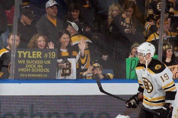 Web Check out our funny hockey sign selection for the very best in unique or custom. Magical Meaningful Items You Cant Find Anywhere Else. A photograph shows two Boston Bruins fan holding a sign stating that they performed a sex act with player Tyler Seguin.